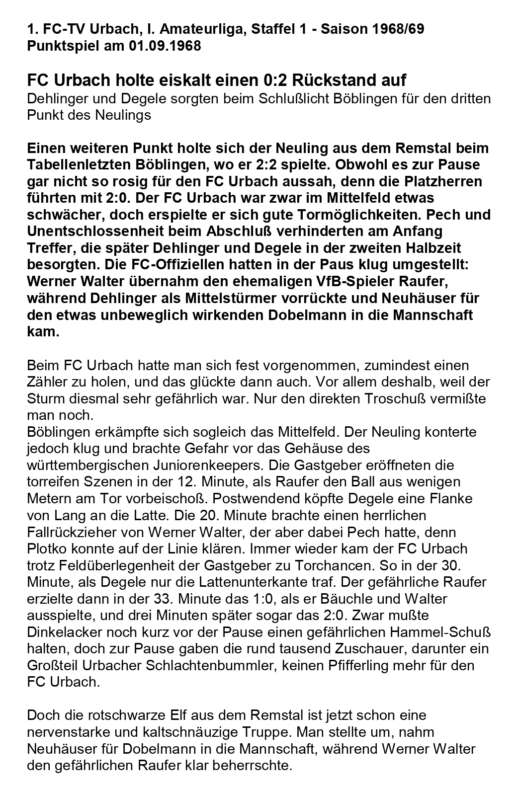 FCTV Urbach I. Amateurliga Saison 1968 69 SpVgg Boeblingen FCTV Urbqach 01.09.1968 Seite 1