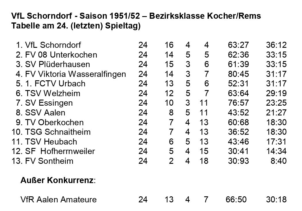 VfL Schorndorf Saison 1951 1952 Bezirksklasse Kocher Rems 24. Spieltag