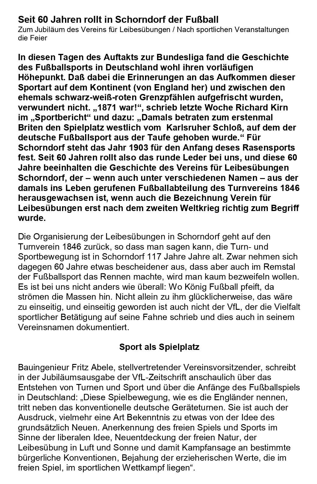 VfL Schorndorf 60jaehriges Jubilaeum 1963 Zeitungsbericht vom 06.09.1963 Seite 1