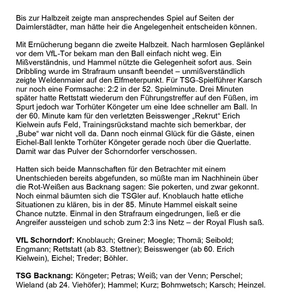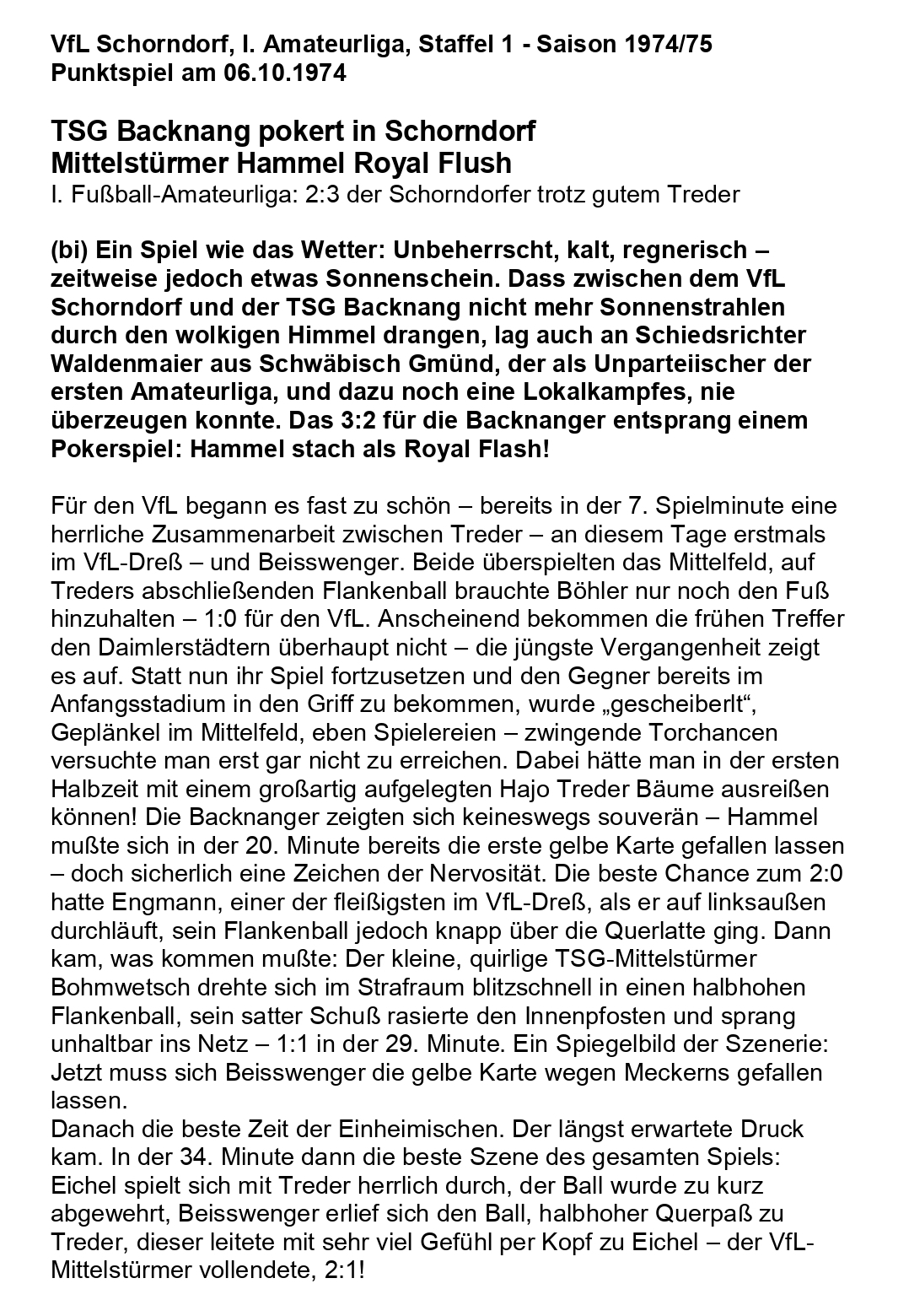 VfL Schorndorf I. Amateurliga Saison 1974 75 VfL Schorndorf TSG Backnang 06.10.1974 Seite 1