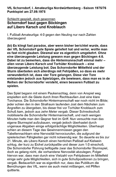 VfL Schorndorf I. Amateurliga Saison 1975 76 VfL Schorndorf Union Boeckigen 27.09.1975 Spielbericht