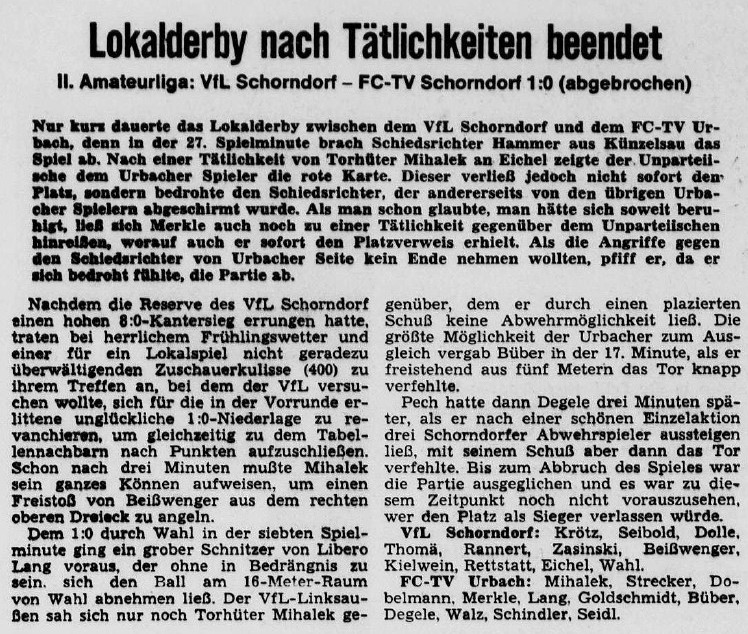 FCTV Urbach VfL Schorndorf Saison 1971 72 VfL Schorndorf FCTV Urbach 05.02.1972
