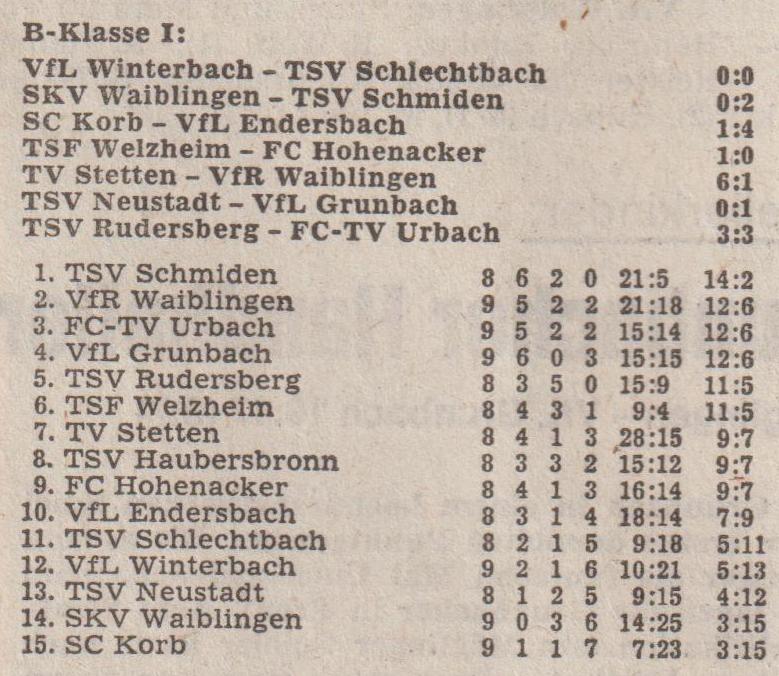 B-Klasse I Saison 1976 77 Begegnungen Tabelle 24.10.1976