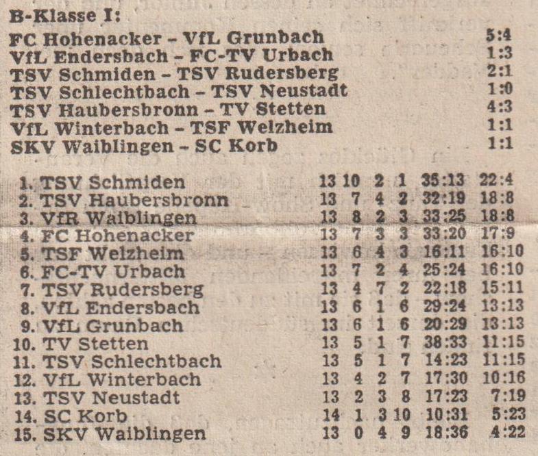 B-Klasse I Saison 1976 77 Begegnungen Tabelle 05.12.1976