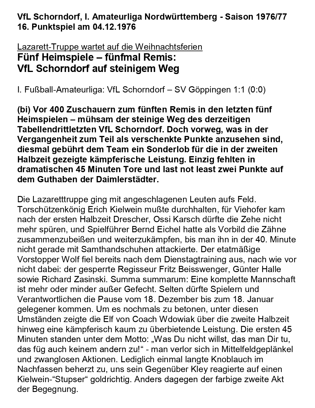 VfL Schorndorf I. Amateurliga Saison 1976 77 VfL Schorndorf SV Goeppingen Abschrift Bericht Spieltag 04.12.1976 Seite 1