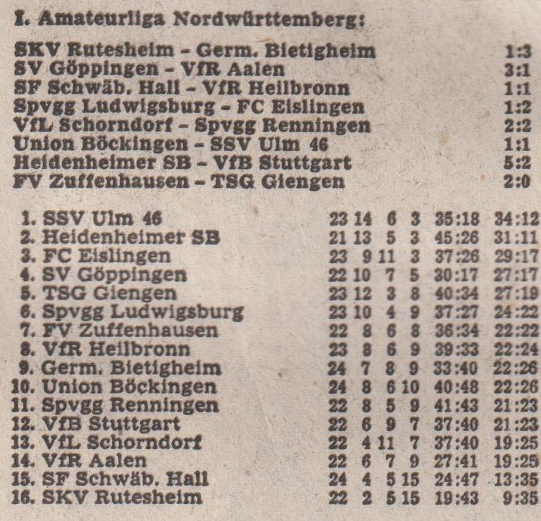 I. Amateurliga Saison 1976 77 Begegenungen Tabelle Spieltag 26.02.1977