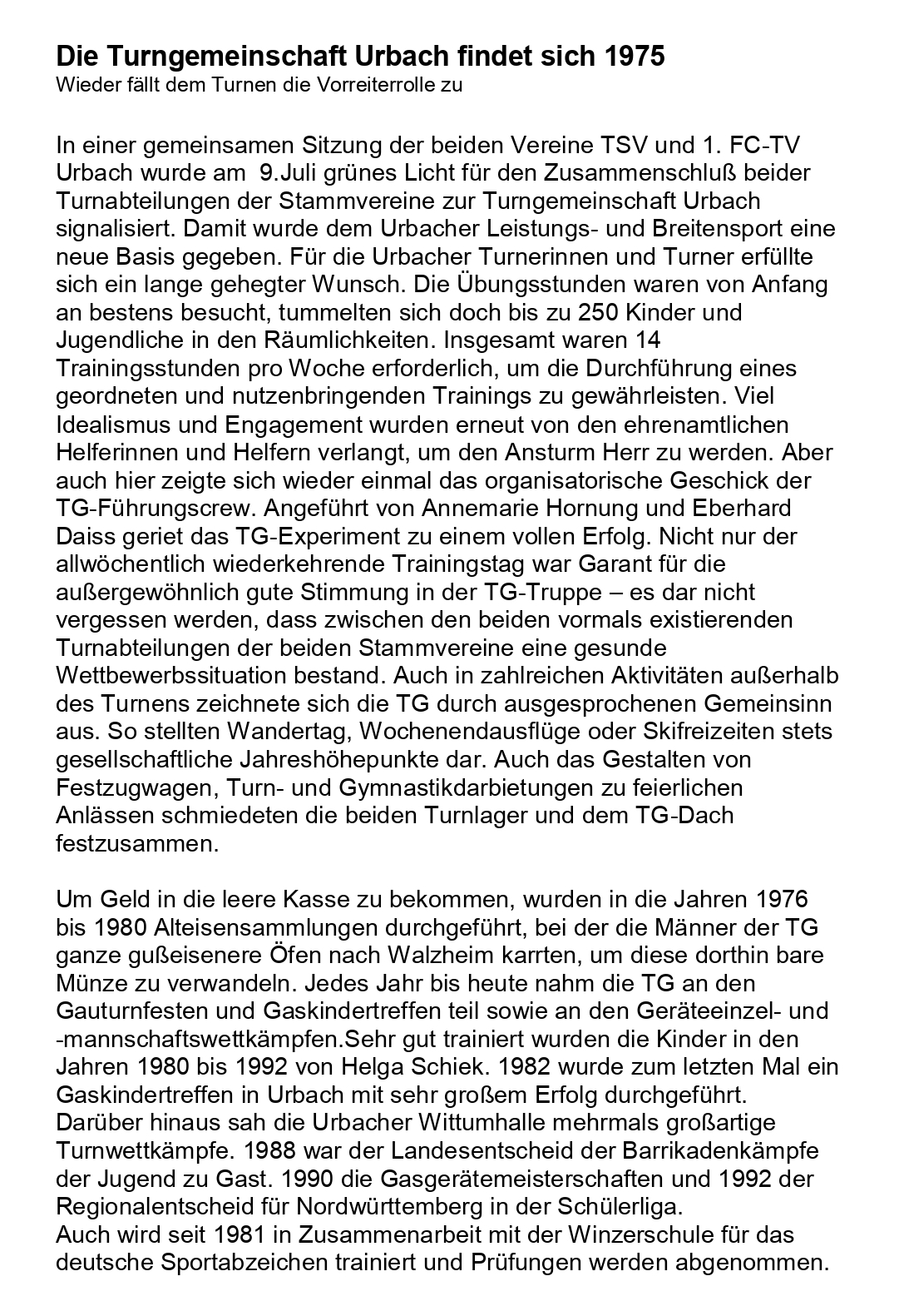 Turngemeinschaft Urbach findet sich 1975 Seite 1