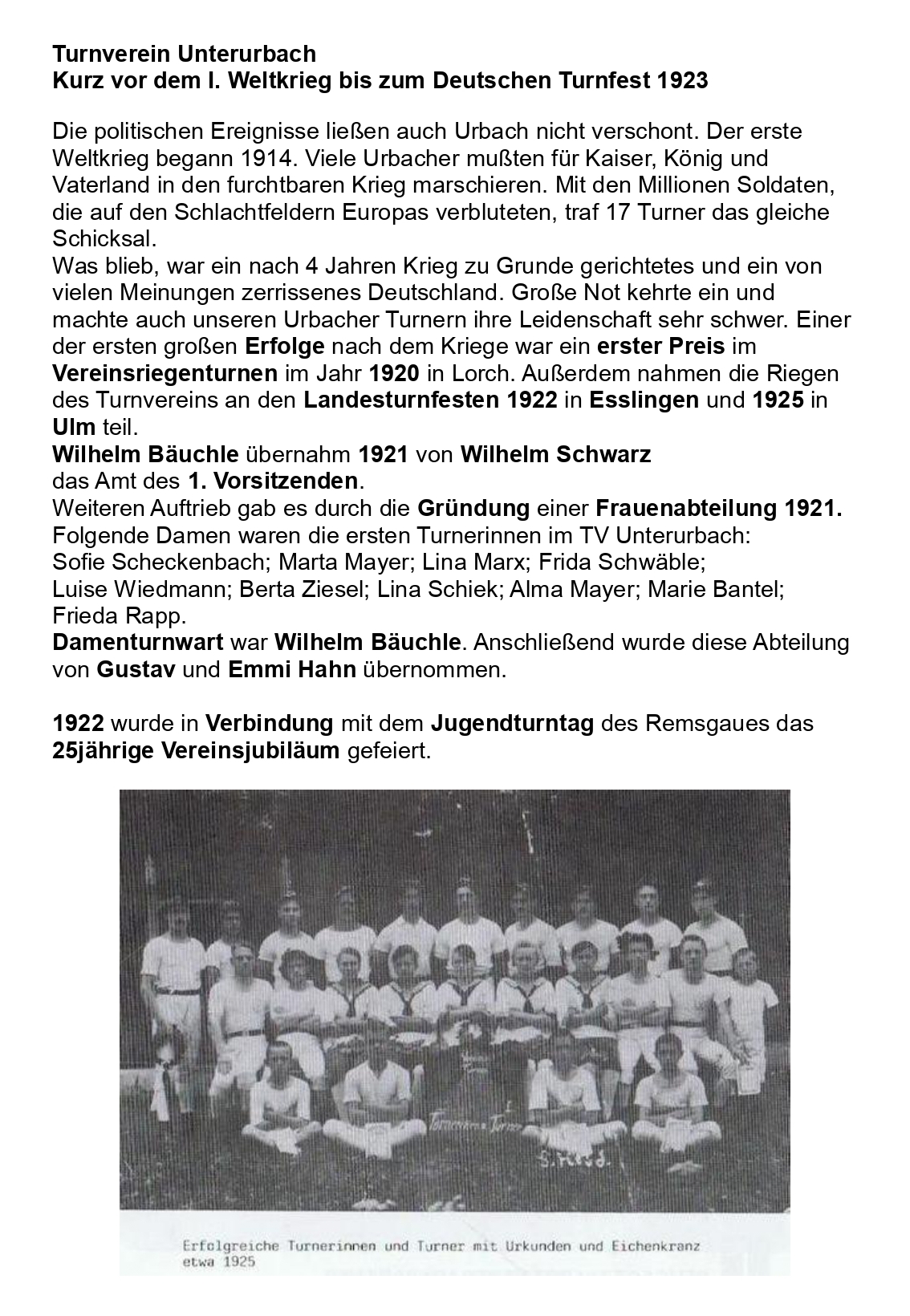 Turnverein Unterurbach Kurz vor dem Ersten Weltkrieg bis zum Deutschen Turnfest 1923 Seite 1