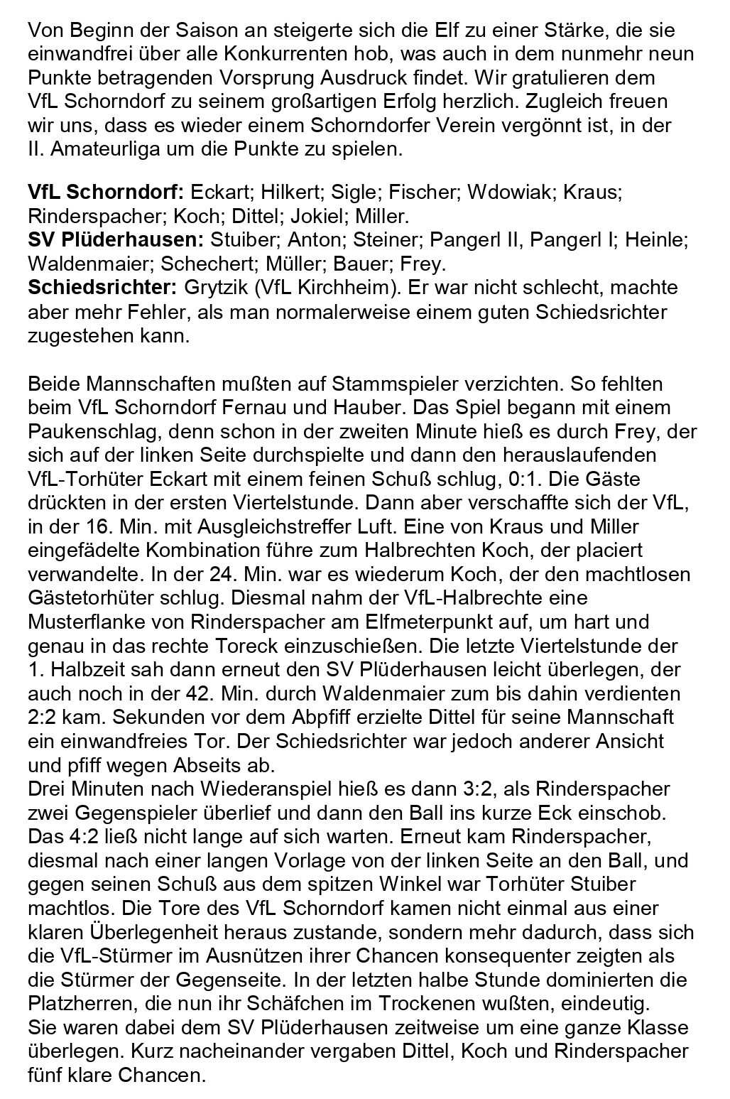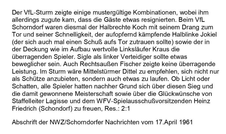 Der VfL Schorndorf ist A-Klassen-Meister Abschrift Zeitungsbericht 17.04.1961 Seite 1 (2)