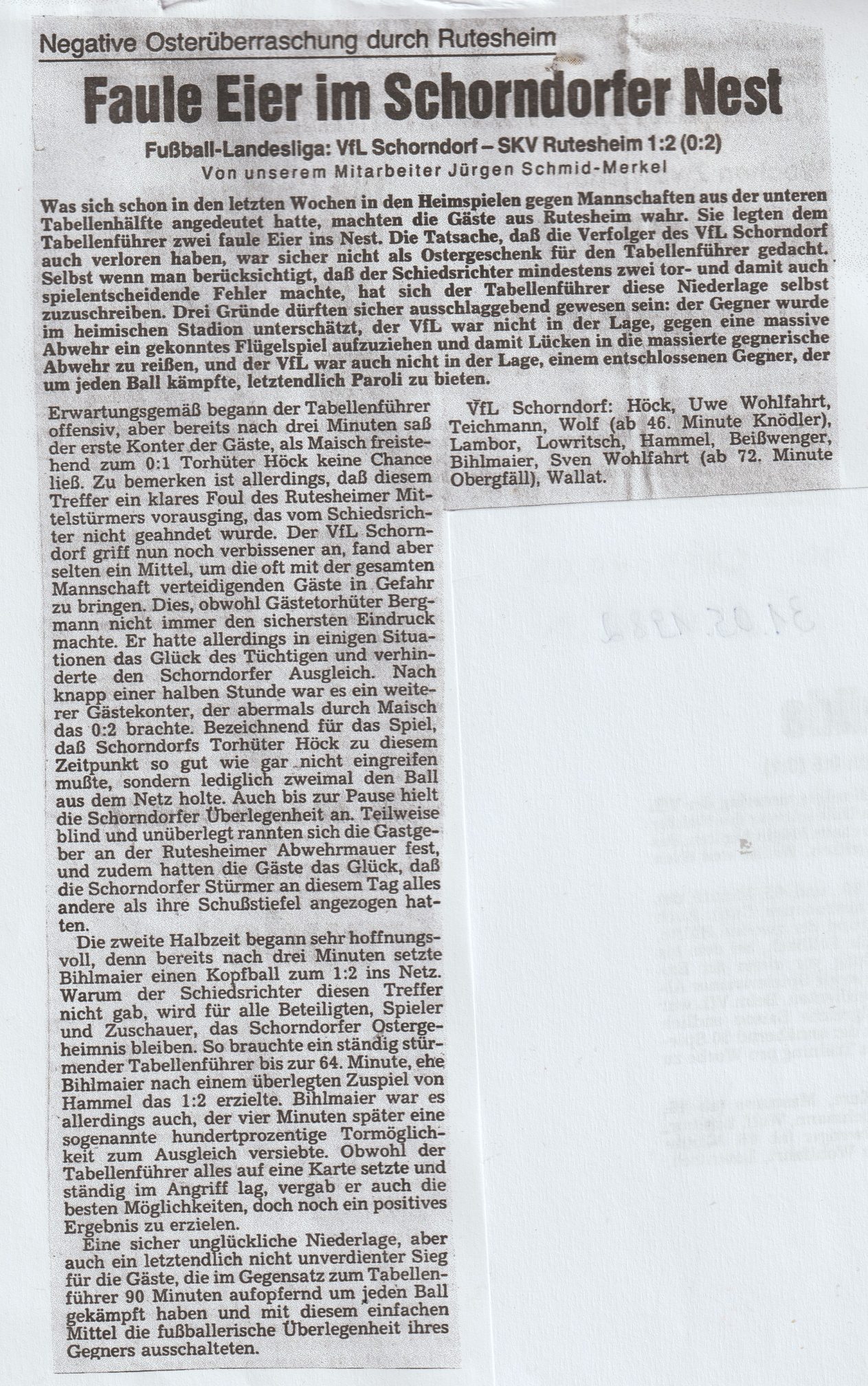 VfL Schorndorf Landesliga Saison 1982 82 VfL Schorndorf SKV Rutesheim 12.04.1982 Zeitungsbericht