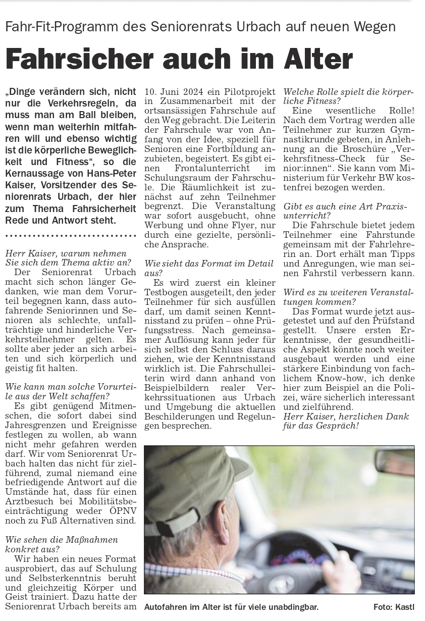Urbach Sonderveroeffentlichung Wochenblatt 05.12.2024 Seite 3 Fahr-Fit-Programm Senioren