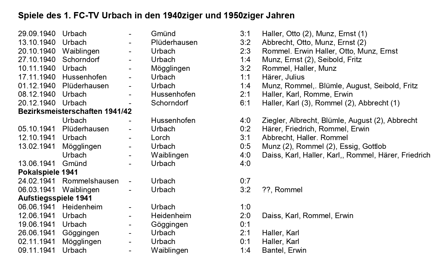 Spiele des 1. FC-TV Urbach in den 1940ziger und 1950ziger Jahren Seite 1