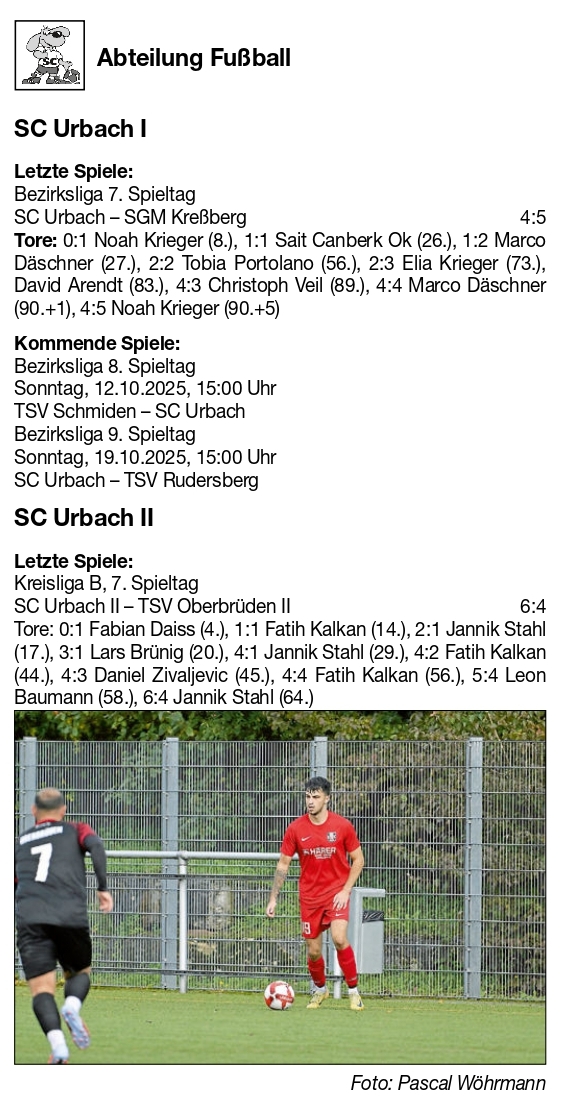 SC Urbach Saison 2026 2026 Spieltag 05.10.2025