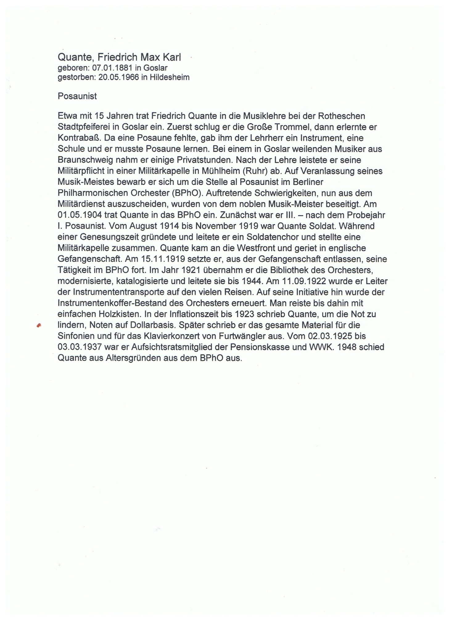 Quante Friedrich 1881 1966 Kurzbiographie