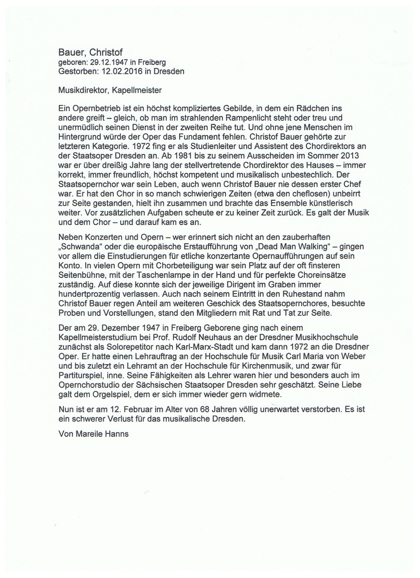 Bauer Christof 1947 2016 Kurzbiographie