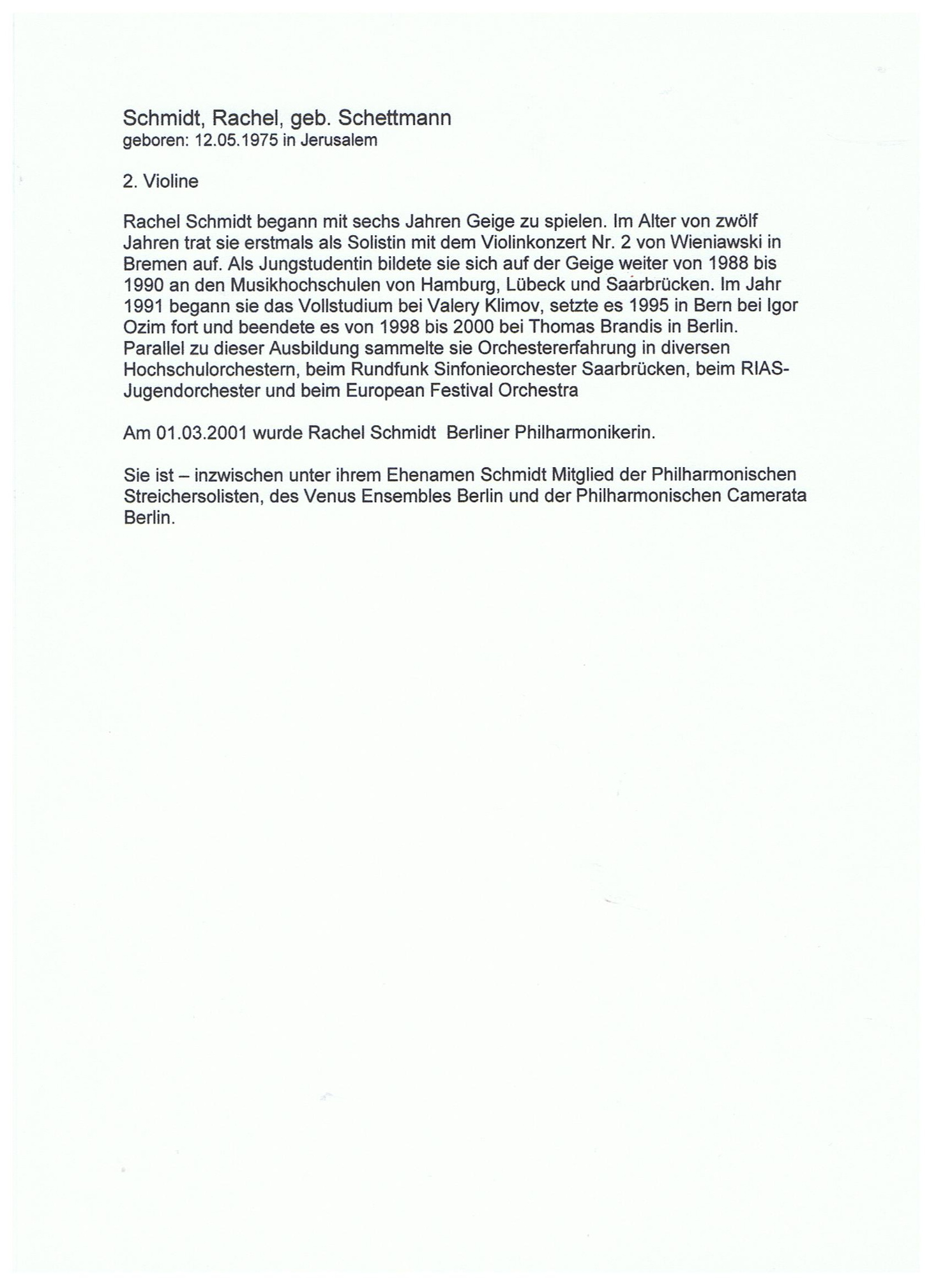 Schmidt Rachel 12.05.1975 Kurzbiographie