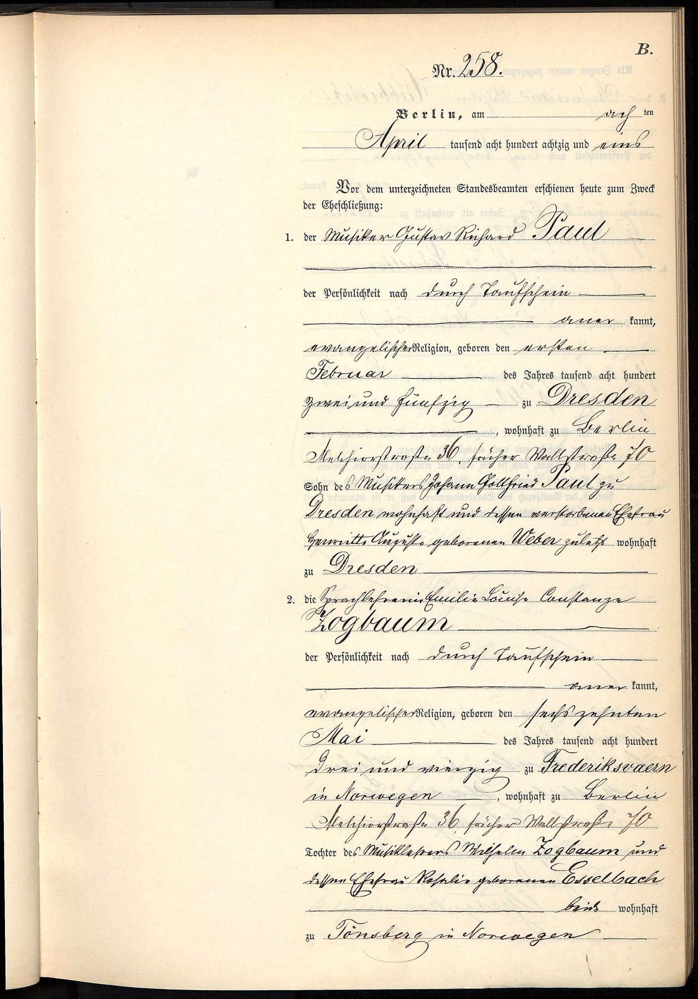Paul Richard Sterbeurkunde 1897 Ehefrau