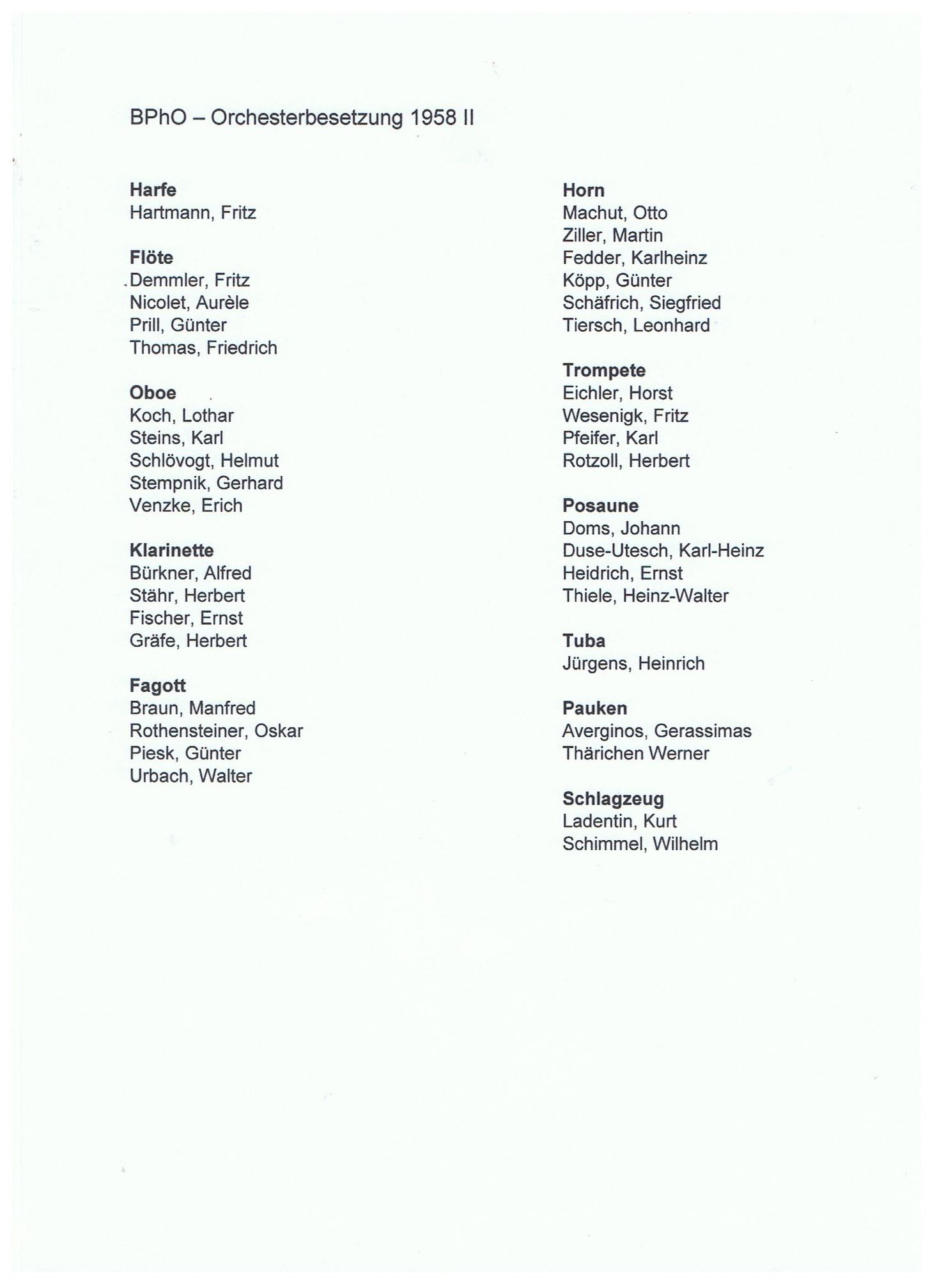 BPhO Orchesterbesetzung 1958 Seite 2