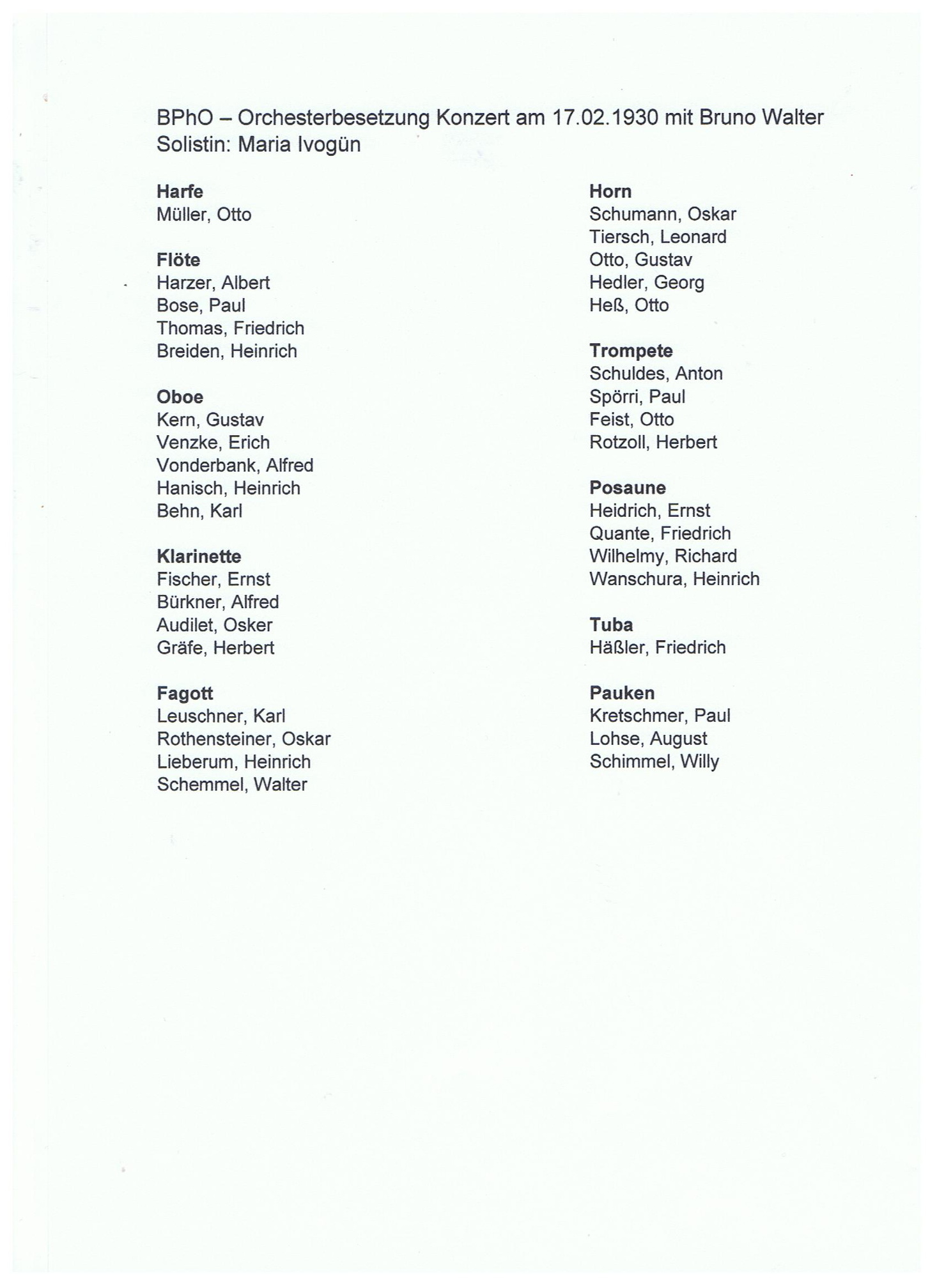 BPhO Orchesterbesetzung 17.02.1930 Seite 2
