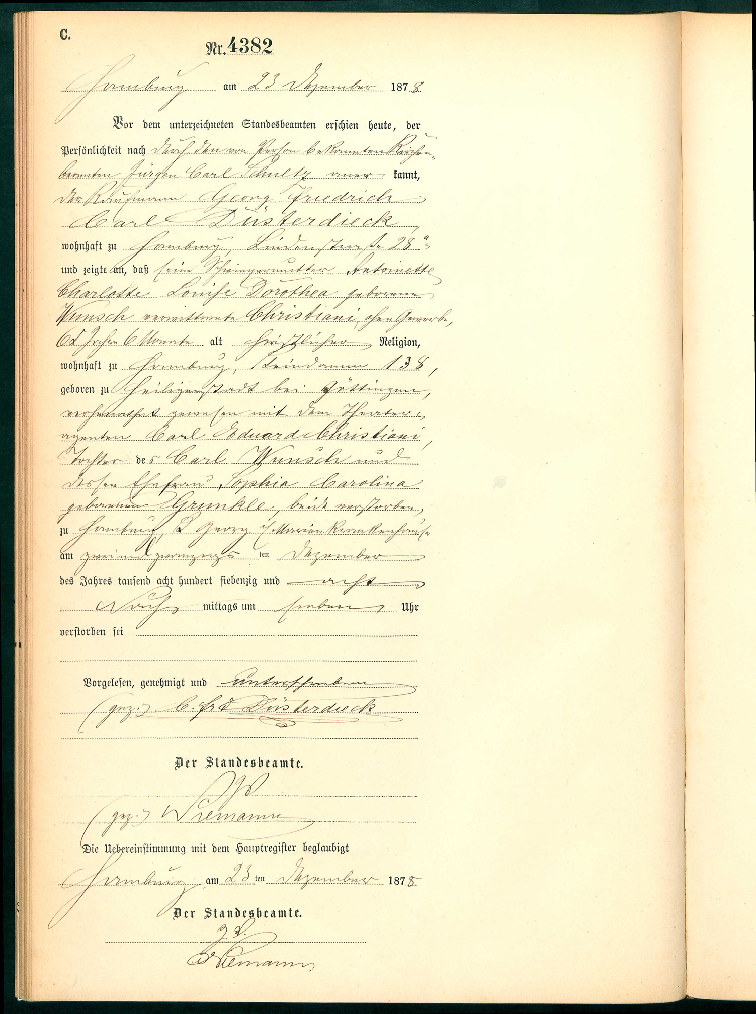 Christiany geb Wunsch Charlotte Antoinette 22.12.1878 Sterbeurkunde