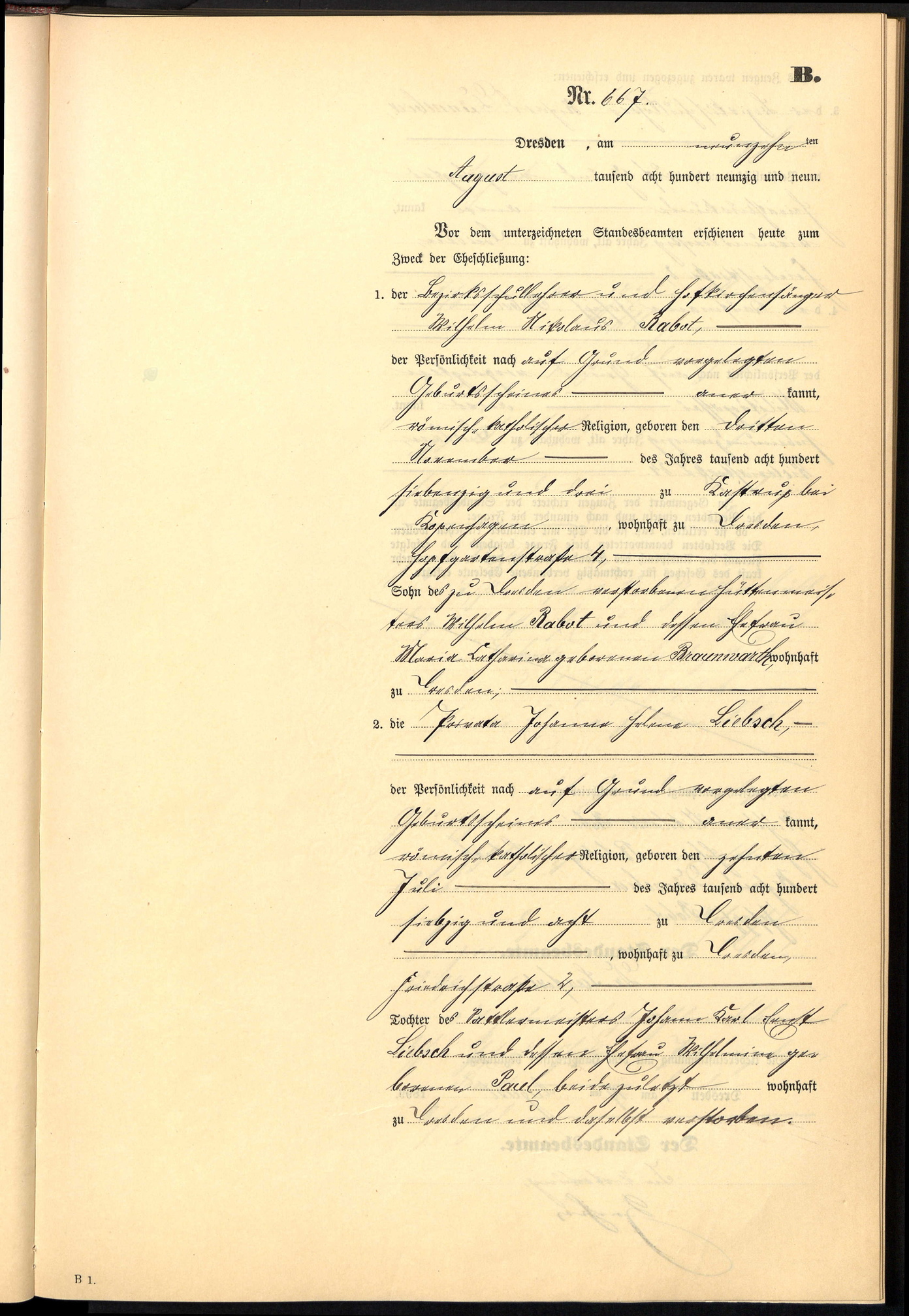 Rabot Wilhelm 1873 1947 Heiratsurkunde 1899 Seite 1