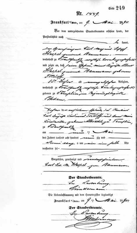Baumann Anna 1855 1890 Sterbeurkunde 09.05.1890