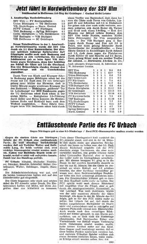 FCTV Urbach FV Nuertingen 08.09.1968 Bericht