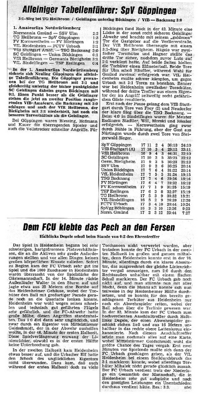 VfL Heidenheim FCTV Urbach 08.12.1968 Bericht