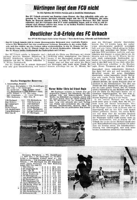FCTV Urbach FV Nuertingen 21.09.1969 Bericht