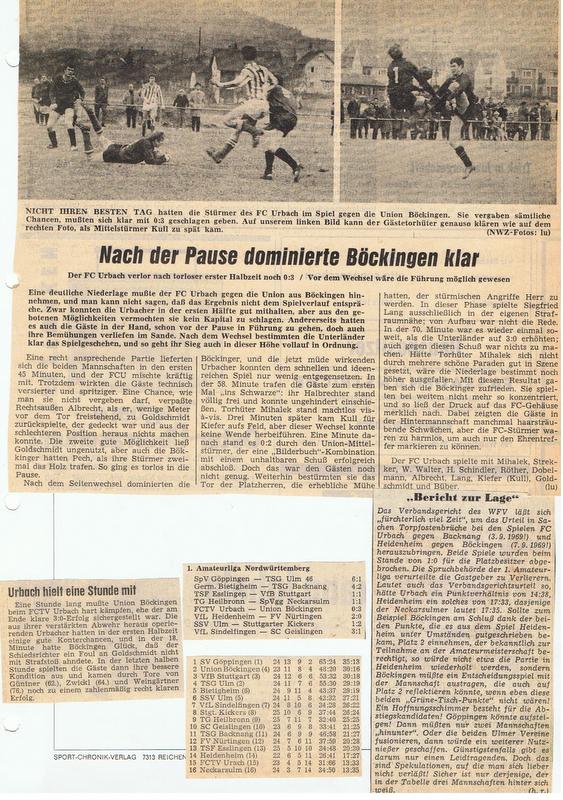 FCTV Urbach FV Union Boeckingen 22.03.1970 8. Rueckrundenspiel