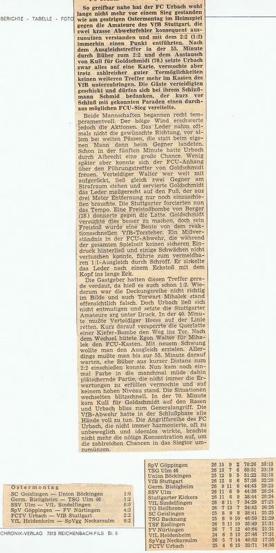FCTV Urbach VfB Stuttgart Amateure 12. Rueckrundsnspiel 30.03.1970