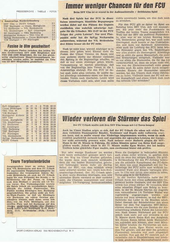 SSV Ulm FCTV Urbach 11. Rueckrundenspiel 11.04.1970
