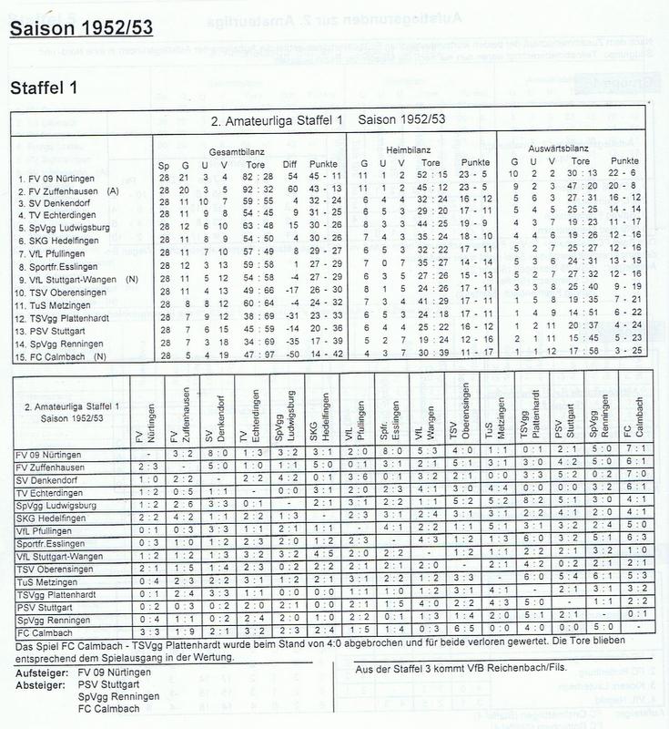 II. Amateurliga Staffel 1 Saison 1952 1953