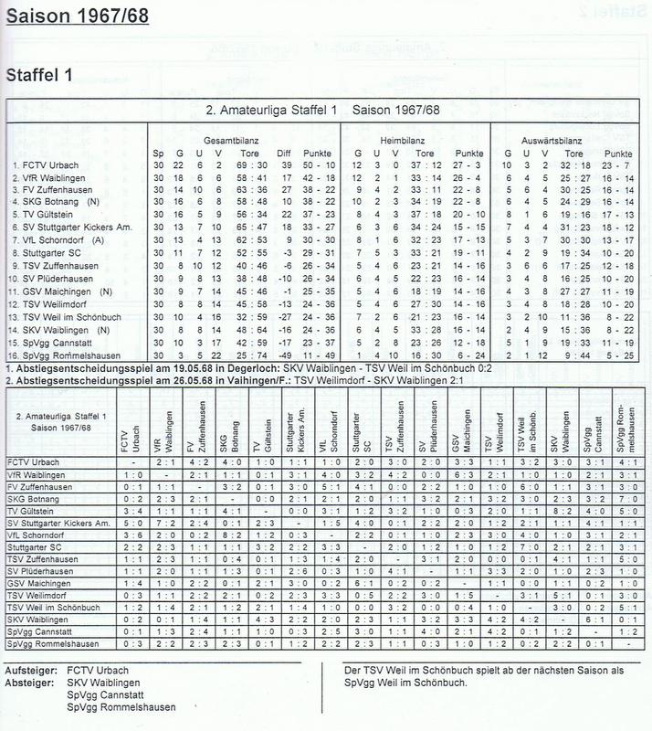 FCTV Urbach Meisterschaftssaison 1967 1968