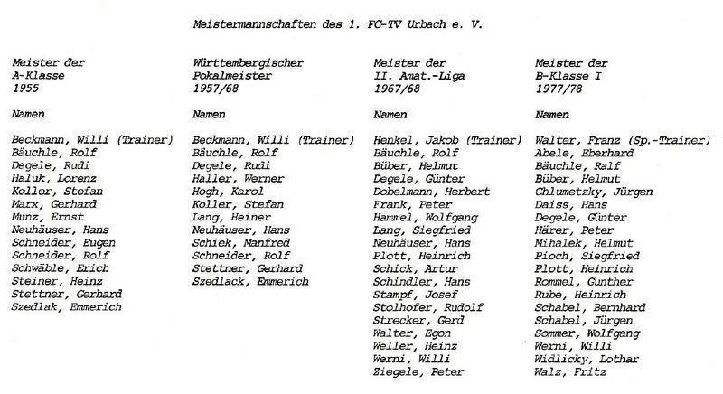 FCTV Urbach Meistermannschaften 1955 1977 1978