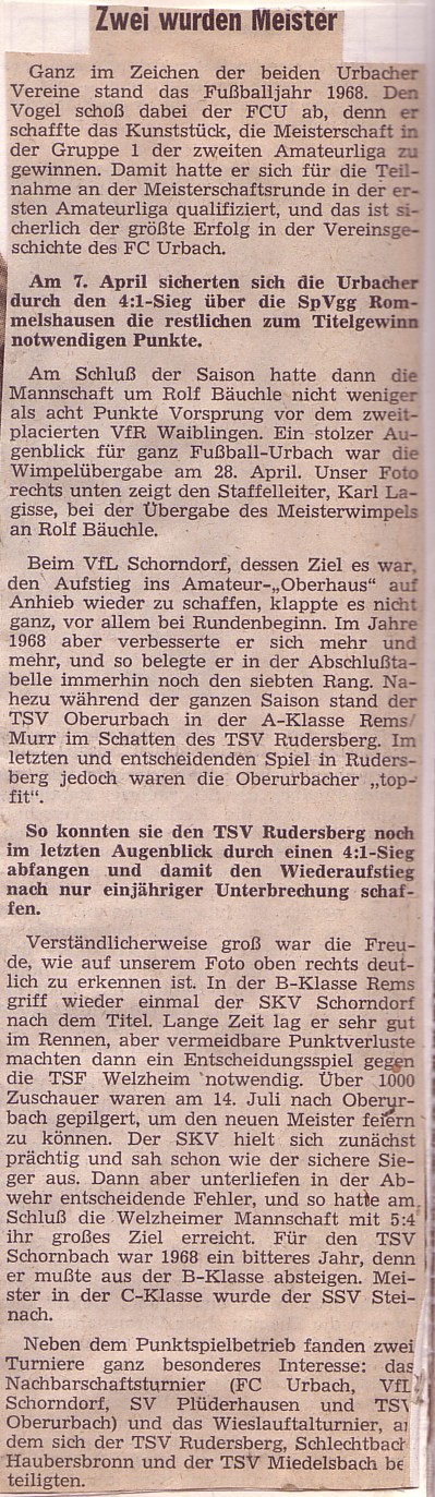 Fussballjahr 1968 Urbach