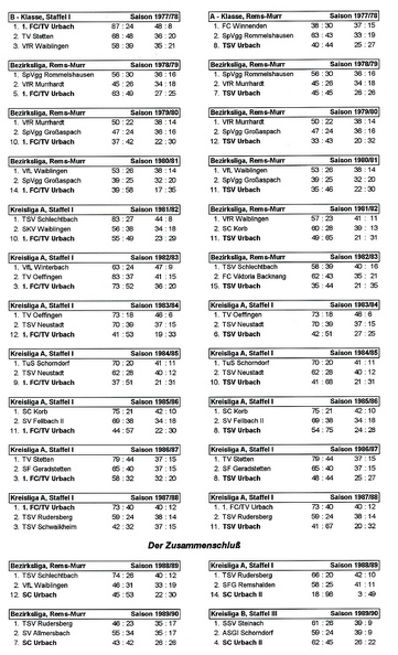 Urbacher Fußballstatistik Saison 1964-65 bis 1976-77 Seite 2 ungeschnitten