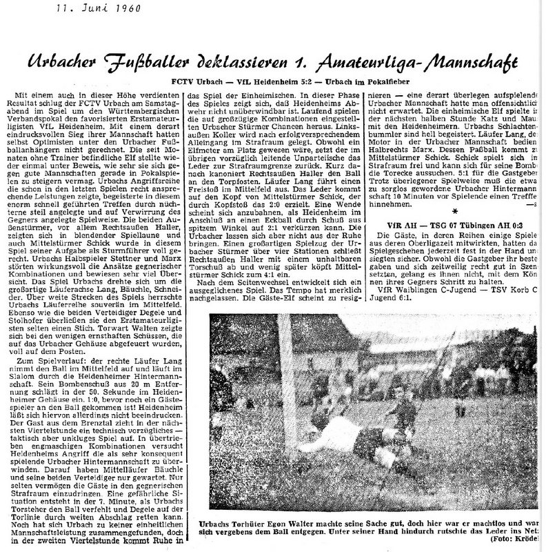 FCTV Urbach VfL Heidenheim Pokalspiel 11.06.1960