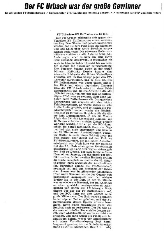 FCTV Urbach FV Zuffenhausen Saison 1967-68