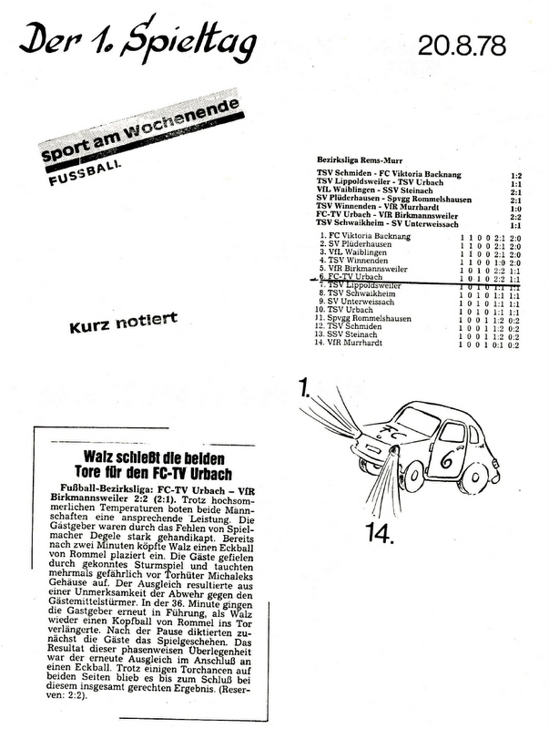 FCTV Urbach VfR Birkmannsweiler Saison 1978 79 1. Spieltag 20.08.1978