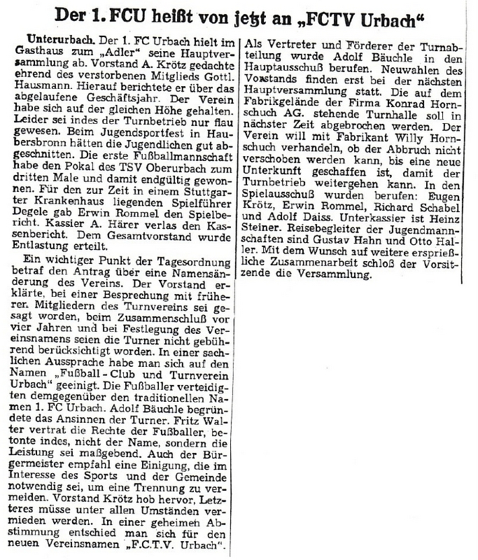 FCTV Urbach Hauptversammlung 1952 01.03.1952