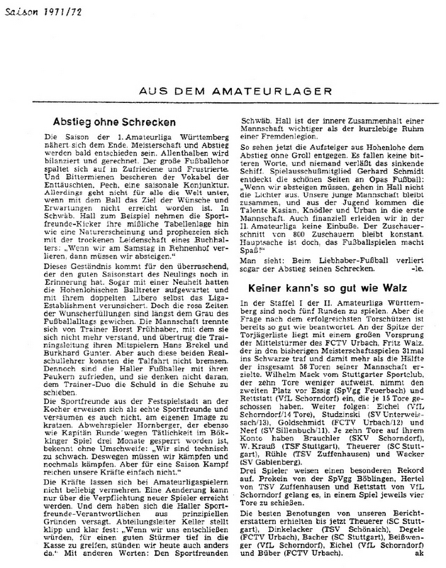 FCTV Urbach Saison 1971 72 Aus dem Amateurlager