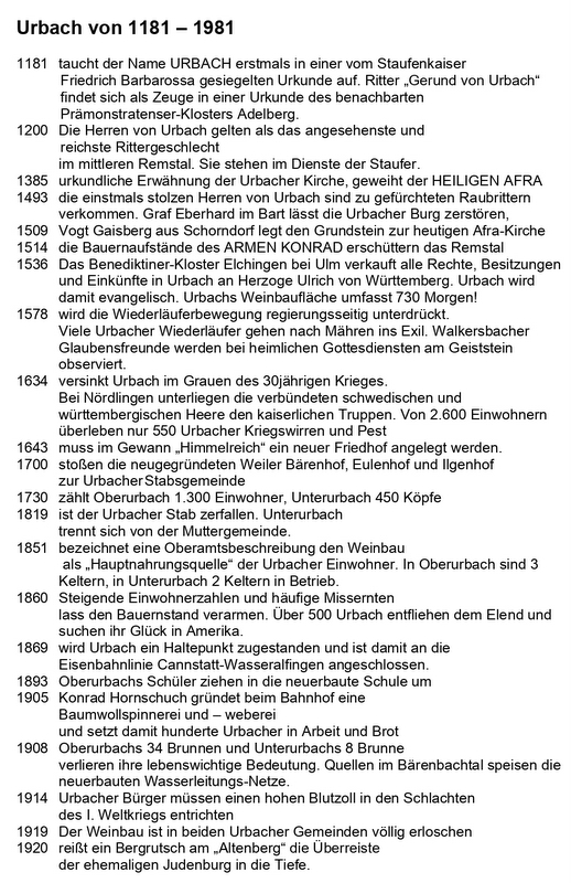 Urbach Geschichte von 1181 bis 1981 Seite 1
