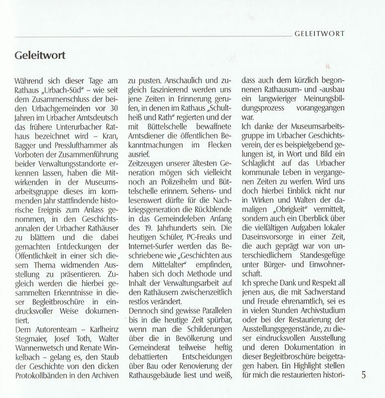Urbacher Rathaeuser Geleitwort Seite 1