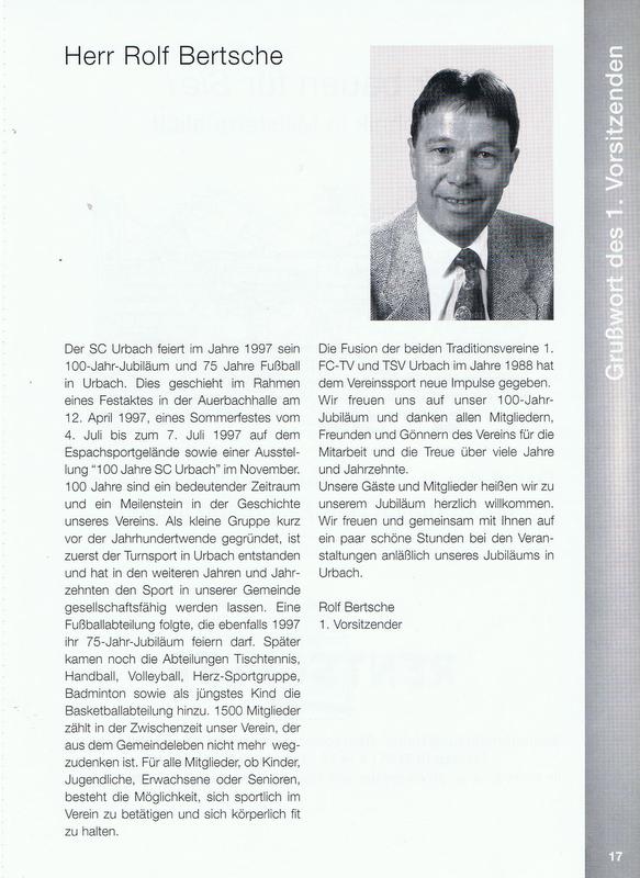 SC Urbach 1997 100 Jahre Turnen 75 Jahre Fussball