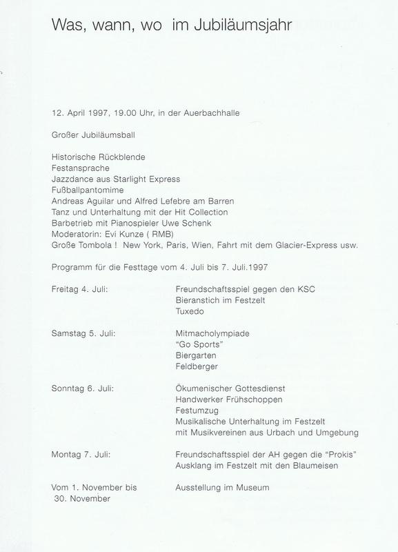 SC Urbach 1997 100 Jahre Turnen 75 Jahre Fussball