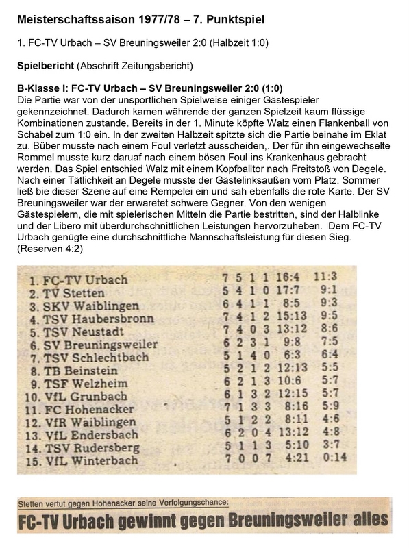 Meisterschaftssaison 1977 78 7. Punktspiel