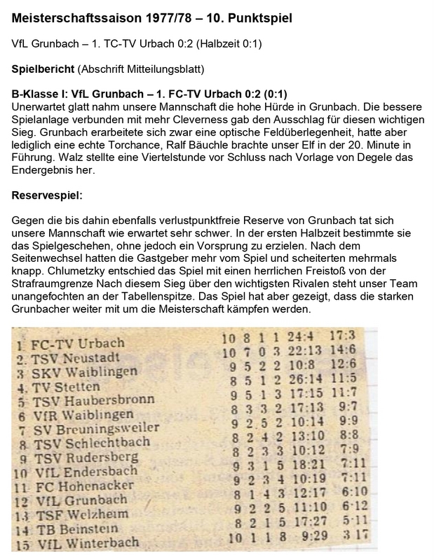 Meisterschaftssaison 1977 78 10. Punktspiel