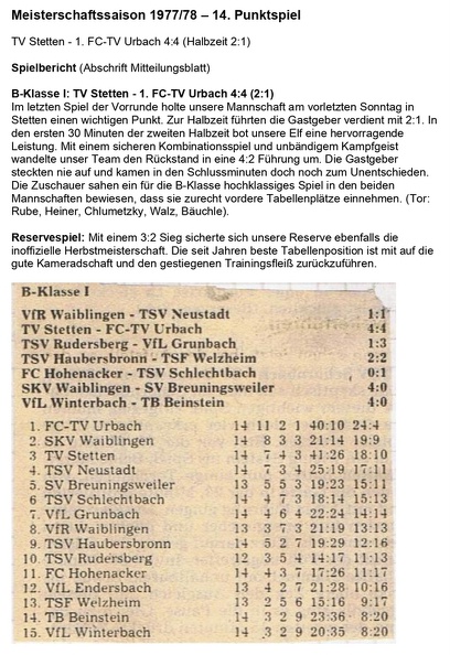 Meisterschaftssaison 1977 78 13. Punktspiel