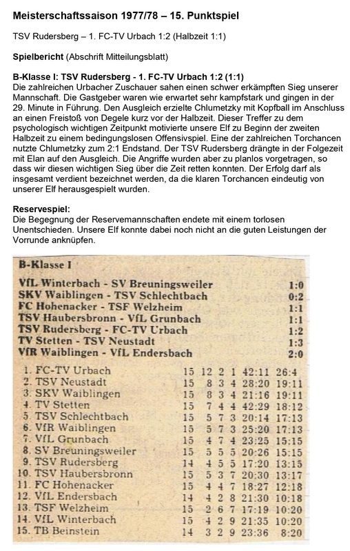 Meisterschaftssaison 1977 78 15. Punktspiel